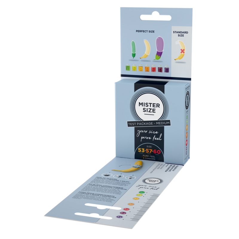 Pure Feel - Set de Pruebas - Condones 53, 57, 60 mm - 3 Piezas - ES/PT/EN