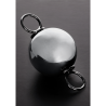 Autobondabge Ice Ball lock - 70mm ball made by stainless steel, The Ice Castle works on the principle of melting ice. It's perfect for self bondage. Simply fill it with water, insert the 2 stick, the excess water comes out. Then place it in the freezer compartment. There is a hole in the outer tube that prevents the lock from being blown up by freezing water. Capacity approx. 250ml. The opening time depends on the ambient temperature, this lock opens after about 2h30min at a temperature of 20 ° C. The two eyelets at the ends are for attaching ropes