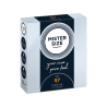 ¡Solo se siente bien, cuando encaja bien! Piénsalo: todo lo que te pones en el cuerpo, desde guantes hasta sombreros y chaquetas, está perfectamente diseñado para tu talla. Y ahora también lo es tu condón. ¡Con un preservativo MISTER SIZE a medida, lo sentirás todo y no temerás a nada! El tamaño del condón, los condones que se ajustan perfectamente, eso no es realmente algo en lo que pensemos o hablemos. Muy a menudo, los hombres no saben realmente cuál es el tamaño correcto de condón. Tampoco se ofrece mucha ayuda en el mercado para informar a los hombres sobre el tamaño correcto de condón. Ponerse el tamaño incorrecto del condón puede causar que se deslice, se rompa, que se sienta aburrido y, sobre todo, que no se disfrute. Además, los preservativos actualmente disponibles en el mercado varían considerablemente en textura, sabor y forma. Pero apenas fluctúan en tamaño. El tamaño del condón no se menciona realmente, quizás porque el ancho varía entre 52 y 56 mm. Solo unos pocos preservativos están disponibles en el tamaño de 57 mm, un tamaño de preservativo que ya se considera muy grande. Sin embargo, si observamos estudios recientes sobre el tamaño del pene erecto, se encontró que los anchos de 58 a 61 mm son los tamaños promedio. MISTER SIZE - ¡7 tamaños de preservativos para un ajuste perfecto! Ofreciendo mayor comodidad, seguridad y sensación!
