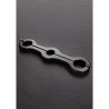 Cute femdom humiliation pillory for brutal linking of hands to male genitalia (penis plus scrotum). Unique Lederhalt's design, splined connection and fixing with single pin.