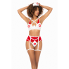 Sorprende a tu pareja con este disfraz de enfermera sexy. Incluye top con aros, tanga de encaje con ligas y espalda descubierta, y diadema.