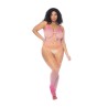 Bodystocking ombre juguetón y colorido en un atrevido diseño de red de cercas con detalles florales.