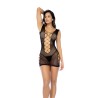Atrévete a mostrar en este irresistible chemise de red con cruce, diseñado con cortes provocativos tanto en la parte delantera como en la trasera para un impacto máximo. Los detalles de tiras en criss-cross añaden un toque de intriga, mientras que la red que abraza las curvas se ajusta en todos los lugares correctos. Una pieza de declaración audaz que es tan inolvidable por detrás como por delante.