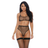 El conjunto de lencería Caught Me Started de dos piezas incluye un top corto de cami de red sin forro con tirantes ajustables, cierre de gancho y ojal en la parte posterior y una braguita de red de corte alto y cintura alta a juego. Este producto viene en una caja.