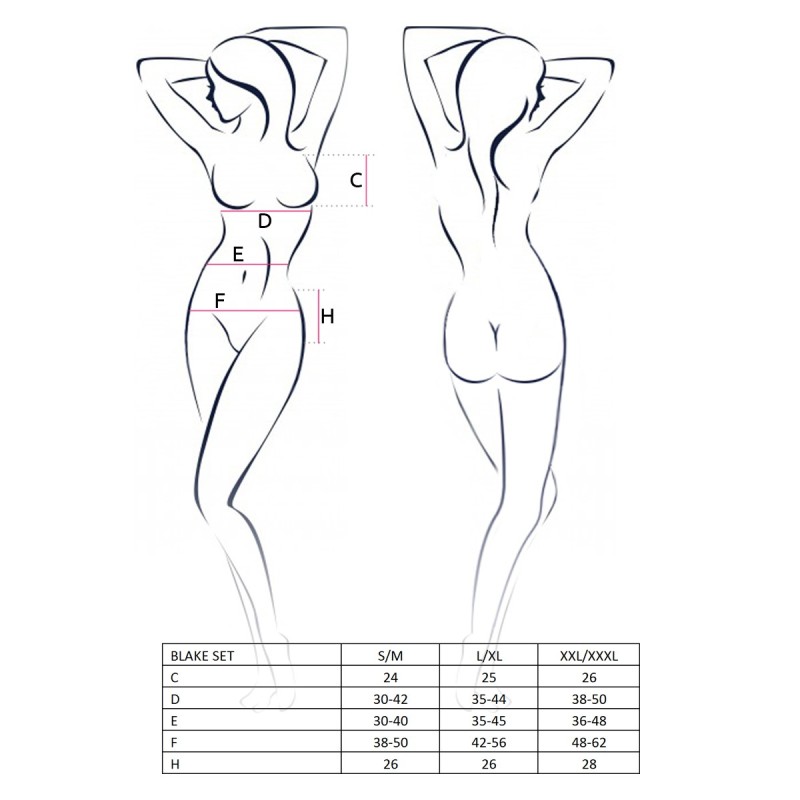 El conjunto Blake es una pieza sofisticada y seductora, compuesta por tres elementos esenciales en microfibra negra y tul elástico. La combinación de materiales garantiza un ajuste perfecto y un tacto suave sobre la piel, creando una silueta sensual y elegante.Los cierres ajustables de las medias y el delicado lazo rojo del sujetador hacen de este conjunto una auténtica tentación. El lazo, estratégicamente colocado en el centro del sujetador, añade un toque atrevido e irresistible, que lo hace ideal para momentos especiales.La tanga incluida completa el conjunto, proporcionando un aspecto elegante y seductor. Este conjunto no sólo es bonito, sino también funcional, ya que está confeccionado con materiales que garantizan comodidad y durabilidad.Materiales: 75% poliéster, 15% poliamida y 10% elastano
