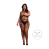 Arnés de cuerpo abierto con tirantes y ligas - Talla grande - Negro