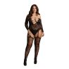 Enterizo de tirantes con patrón de encaje y escote en V profundo con detalle de correa cruzada. Se puede usar sobre o bajo el hombro. La tela suave súper elástica se ajustará desde la talla XXL hasta la talla 5XL.