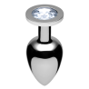 Estos impresionantes tapones chapados en cromo están bellamente diseñados para un uso cómodo y prolongado. Disfruta de una sensación constante, ya que estos tapones pesan más que otros, mientras que los detalles similares a gemas en el mango del tapón añaden un poco de brillo a tu estimulación. Tamaño: El tapón pequeño tiene aproximadamente 5 cm de longitud insertable y 9.5 cm de circunferencia en el punto más ancho. Material: Aluminio chapado en cromo. Color: Disponible en colores Diamante, Rubí y Esmeralda.