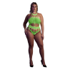Our Neon lingerie is the perfect addition to your collection. Made with comfortable, easytofit, stretchy materials they are designed to fit your body perfectly. Whether you're using them as party wear or as lingerie, this eye-catching piece will make sure you stand out! Unleash your inner goddess with this stunning UV activated lingerie. The Grecian neckline gives it that wow-factor and makes you stand out. The lines on the OUCH! Body with Grecian Neckline accentuate your body with the waistband highlighting your waistline. The UV activated materials adds a touch of mystery and allure. Easy to fit because of the stretchy materials will make you light up the night. Available in neon pink and neon green. Sizes run from XS/ XL to XL/XXXXL