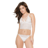 Bralette de corte largo con panty sin entrepierna sexy. El tejido de encaje con borde es elástico. Las copas del bralette tienen detalles de tiras y el panty tiene tirantes ajustables en el tamaño, lo que permite ajustar la talla. *El tanga usado debajo del panty no está incluido.