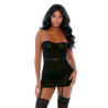 El conjunto de lencería Chain Reaction de dos piezas presenta malla de guepardo con tirantes ajustables de cadena dorada, escote corazón, cinturilla elástica, tirantes de liga adjuntos y braguita a juego. Este producto viene en una caja.