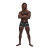 De la colección Sport Mesh de Male Power, el Sport Mini Short presenta una cinturilla cubierta de tela que se mantiene en su lugar, con una etiqueta MP con el logotipo. Rayas deportivas de elastano suave destacan en la parte delantera, trasera y en las piernas.