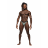 De la colección Male Power Magnificence, este estilo incluye un Jock con una ventana recortada en la cintura, ojales decorativos de metal y una banda elástica de felpa delgada que se mantiene en su lugar. Bandas de pierna de felpa elástica que realzan el trasero.