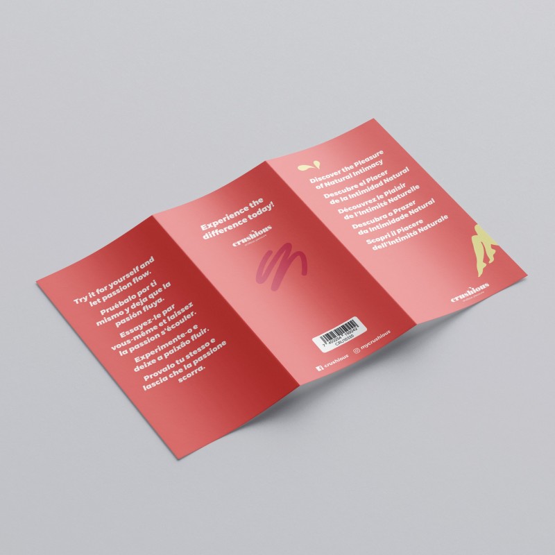 Folleto con muestra de lubricante de base acuosa Crushious e informaci