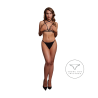 Este seductor sujetador triangular de copa abierta en negro presume de una elegante correa para el cuello y deslizadores ajustables para un ajuste personalizado. Mezclando perfectamente elegancia y sensualidad, es una adición llamativa a cualquier colección de lencería. Disponible en tallas XS a XL.